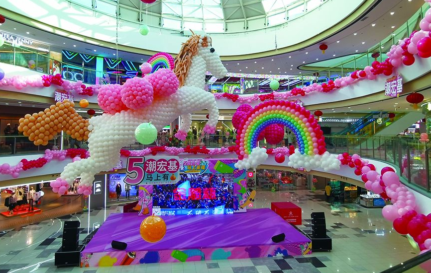走進(jìn)集寧區(qū)萬達(dá)廣場(chǎng),一樓東門的跨年倒計(jì)時(shí)展板格外醒目,“約定,今年要和我愛的人一起跨年”的字樣搭配喜慶的紅色背景,將跨年的儀式感拉滿。商場(chǎng)內(nèi)部的布置巧思盡顯,中庭位置,巨型氣球打造的白色小馬造型栩栩如生,粉色、橙色氣球簇?fù)碜笥遥慌缘牟屎鐨馇蜓b飾蜿蜒舒展,與各品牌門前統(tǒng)一的彩色氣球相映成趣,簡(jiǎn)約的裝飾搭配讓節(jié)日氛圍愈發(fā)濃郁。