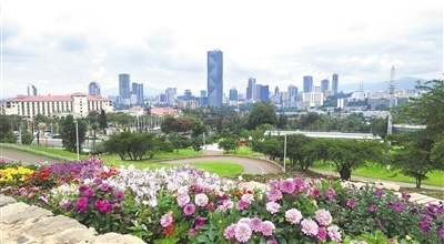 友誼廣場入口,外墻上四個遒勁有力的漢字“友誼廣場”躍入眼簾,紅底白字,分外醒目。走進其中,目光所及皆是綠色,樹木蔥蘢、青草葳蕤,頓覺神清氣爽,仿佛踏入一個天然氧吧。廣場依山而建,高處連綿起伏的琴弦狀花帶,如同一條條彩帶在空中飛舞;半山腰空曠的廣場上,可遠(yuǎn)眺中央商務(wù)區(qū)的城市景觀;山腳的人工湖波光粼粼,倒映著藍(lán)天白云和綠樹紅花……