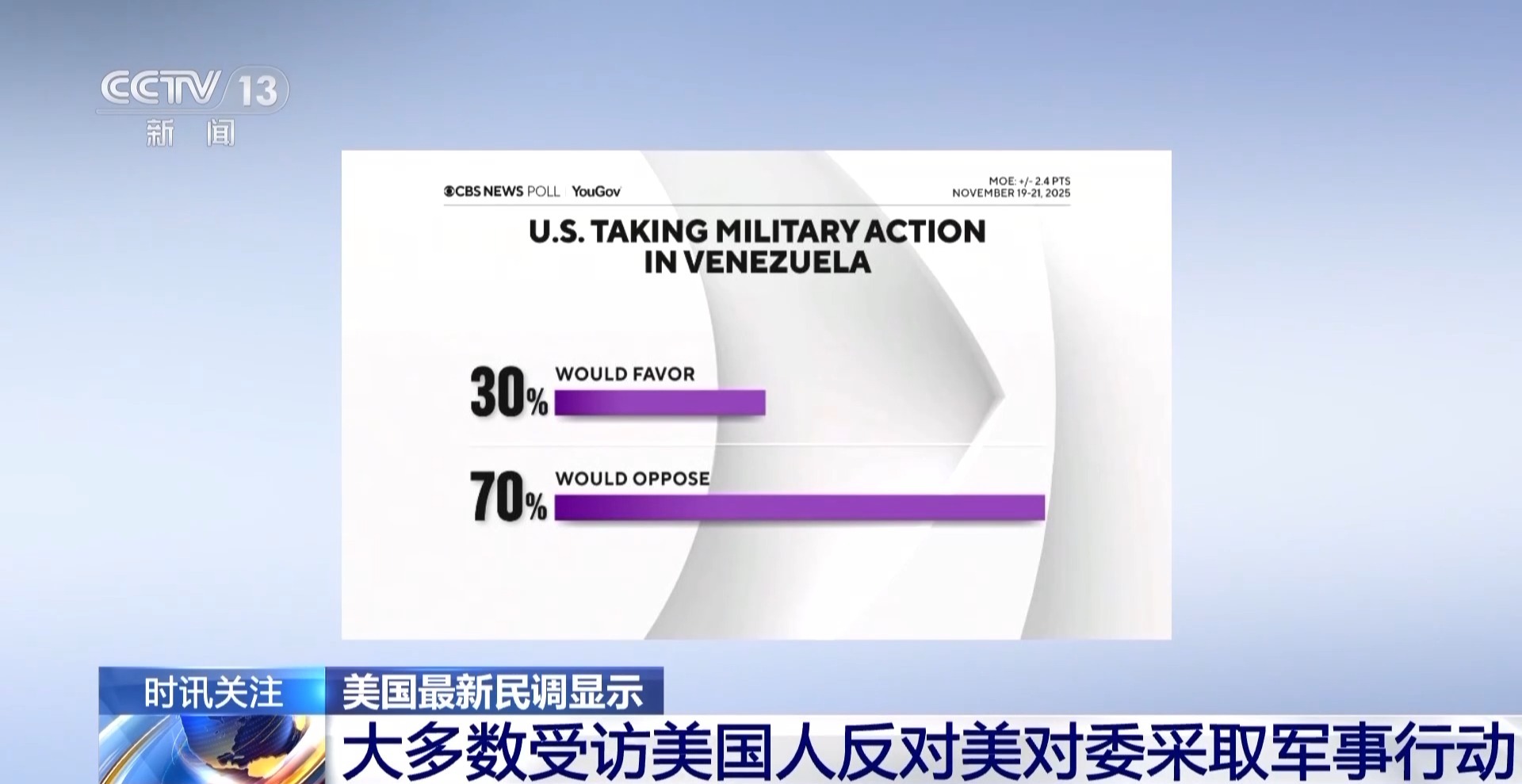 美國23日的一份最新民意調(diào)查結(jié)果顯示,70%的受訪美國人反對美國對委內(nèi)瑞拉采取軍事行動(dòng)。關(guān)于美國在該地區(qū)針對所謂“販毒船”的攻擊行動(dòng),75%的受訪美國人認(rèn)為美國應(yīng)出示證據(jù),證明其攻擊的船只確實(shí)載有毒品。
