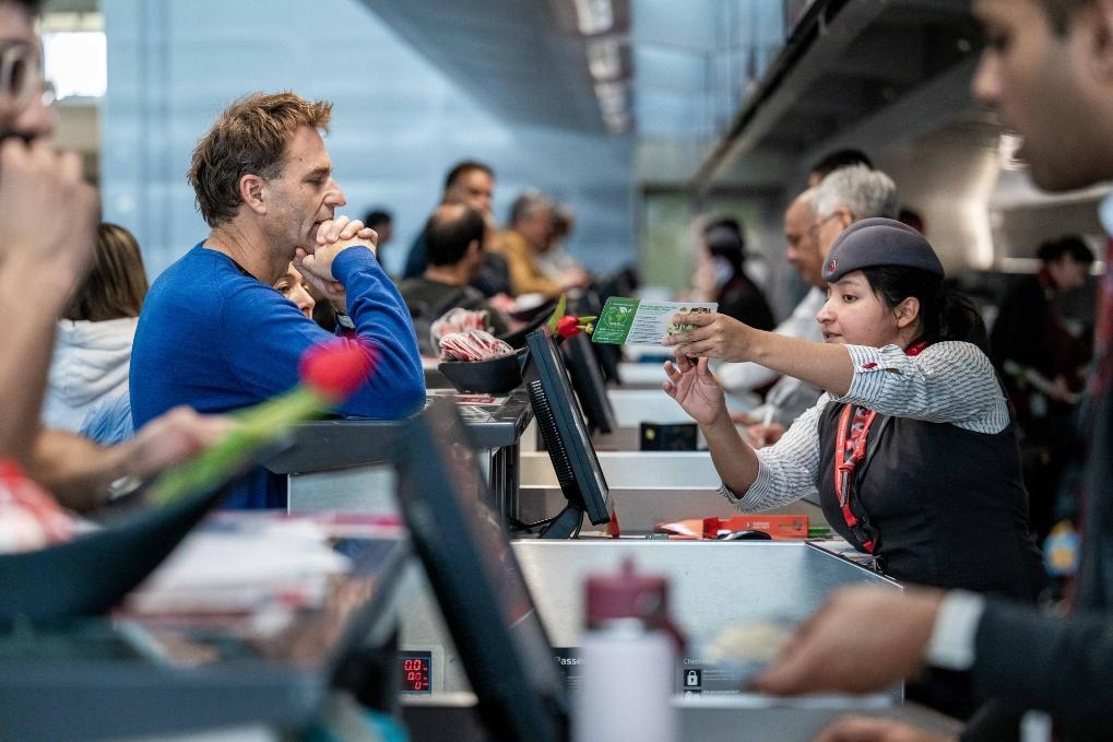 12月20日,旅客在美國舊金山國際機(jī)場(chǎng)辦理值機(jī)手續(xù)。新華社發(fā)(朱子于攝)