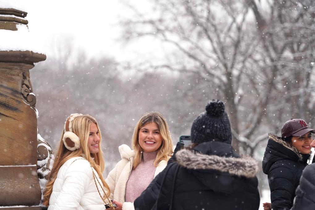 12月27日,在美國紐約中央公園,人們?cè)谘┲辛粲啊P氯A社記者張鳳國攝