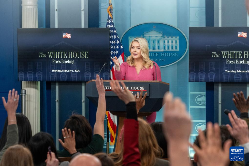 2月5日,在美國(guó)首都華盛頓白宮,白宮新聞秘書(shū)萊維特出席記者會(huì)。新華社發(fā)(李源清攝)