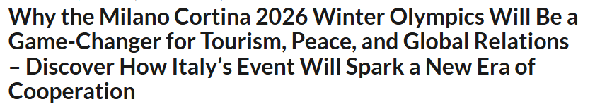 文章認(rèn)為,2026年米蘭-科爾蒂納冬季奧運(yùn)會(huì)舉辦的意義遠(yuǎn)不止于爭奪金牌,還將有力推動(dòng)全球旅游業(yè)復(fù)蘇、促進(jìn)和平理念傳播,并通過體育運(yùn)動(dòng)將不同文化緊密連接。