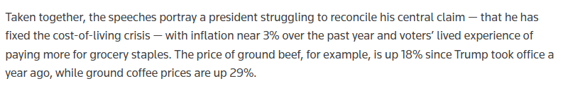報(bào)道認(rèn)為,這些數(shù)據(jù)與美方“已解決生活成本危機(jī)”的表述形成反差。而相關(guān)言論將通脹問題描述為“已經(jīng)解決”,這一說法難以與民眾在超市等日常消費(fèi)場景中的體驗(yàn)相吻合。