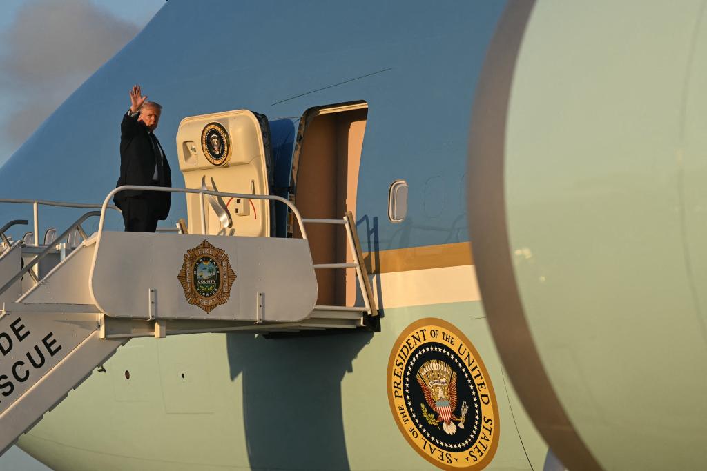 這是3月9日特朗普準(zhǔn)備登上總統(tǒng)專機(jī),從佛羅里達(dá)州返回首都華盛頓。法新社圖片