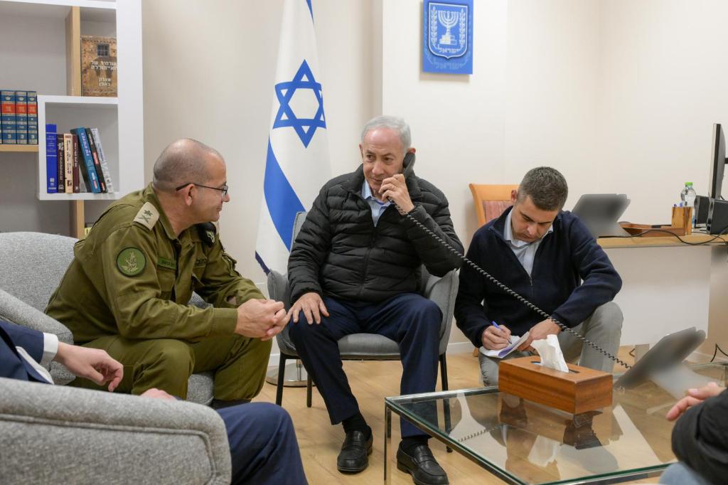 這是以色列總理辦公室3月17日在社交媒體上發(fā)布的以總理內(nèi)塔尼亞胡(中)與軍方人士一起打電話的圖片。新華社發(fā)
