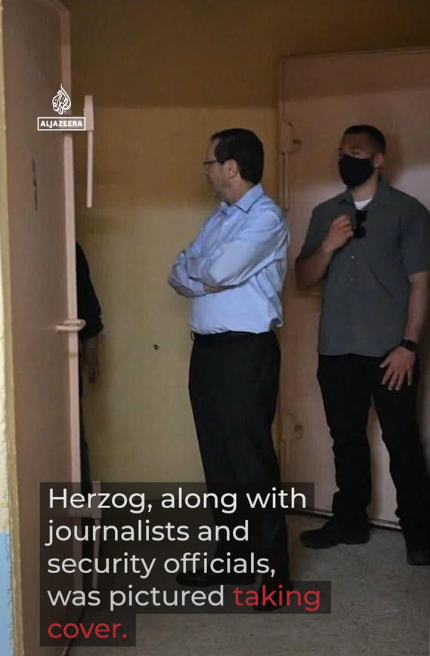 卡塔爾半島電視臺稱,以色列總統(tǒng)赫爾佐格也被迫同安保官員以及記者們一起緊急躲避。