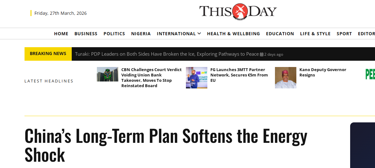 尼日利亞主流媒體《今日?qǐng)?bào)》28日的報(bào)道說(shuō),中東局勢(shì)惡化令全球能源市場(chǎng)陷入困境,多國(guó)在油價(jià)飆升中承受重壓。在這場(chǎng)風(fēng)暴中,有一個(gè)國(guó)家顯得格外從容——中國(guó)。