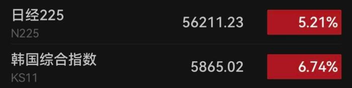 截至8日13:00,日經(jīng)225指數(shù)盤(pán)中漲幅超5%,最高報(bào)56304.49點(diǎn)。韓國(guó)綜合指數(shù)一度漲幅超7%,最高報(bào)5882.91點(diǎn),且仍在持續(xù)走高中。據(jù)韓聯(lián)社報(bào)道,韓國(guó)綜合股價(jià)指數(shù)(KOSPI)和創(chuàng)業(yè)板指數(shù)(KOSDAQ)開(kāi)盤(pán)后雙雙大漲,一度同時(shí)觸發(fā)暫停程序化交易的“臨時(shí)停牌”(Sidecar)機(jī)制。