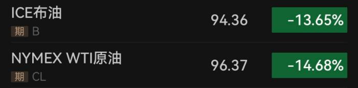 伴隨股市大漲,國(guó)際油價(jià)、貴金屬價(jià)格也出現(xiàn)大幅波動(dòng)。國(guó)際市場(chǎng)原油價(jià)格“高臺(tái)跳水”,截至8日13:00,WTI原油期貨盤(pán)中一度跌幅超過(guò)19%,跌破每桶100美元關(guān)口,達(dá)91.05美元/桶。布倫特原油期貨一度跌超16%,達(dá)最低91.7美元/桶。