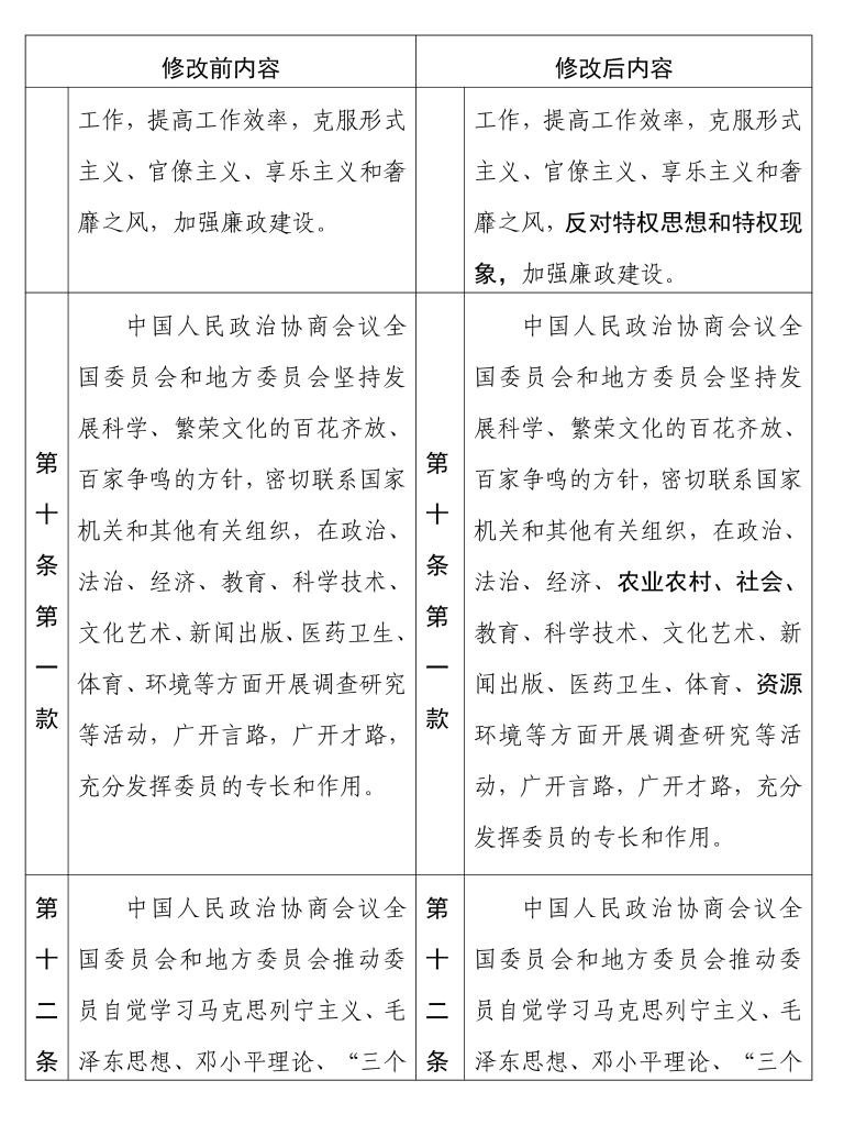 中國人民政治協(xié)商會議章程 修改前后內(nèi)容對照表(12) 新華社發(fā)