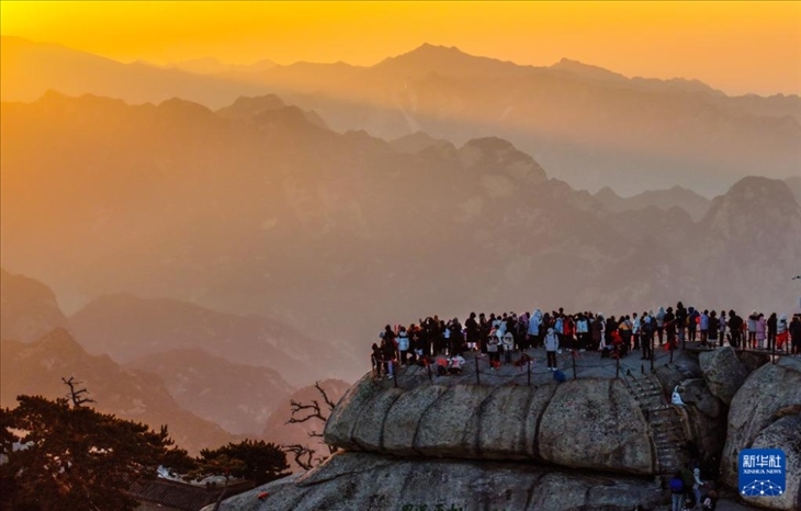 2023年12月31日,游客在位于陜西省渭南市的華山西峰賞景(無人機照片)。元旦假期期間,人們用各種方式樂享時光,迎接新年,歡度假期。新華社發(fā)(汪艷 攝)