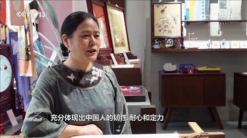 盧建英:“當時我在繡一幅《桃花太平鳥圖》,習近平總書記走到了我的繃架前。他說你好,很親切,很和藹,看得非常仔細。他說中華文化的傳承力有多強,通過這個蘇繡可以看出來,像這樣的功夫充分體現出中國人的韌性、耐心和定力,這是中華民族精神的一部分,能得到總書記的認可,真的是倍感榮耀?!?/p>