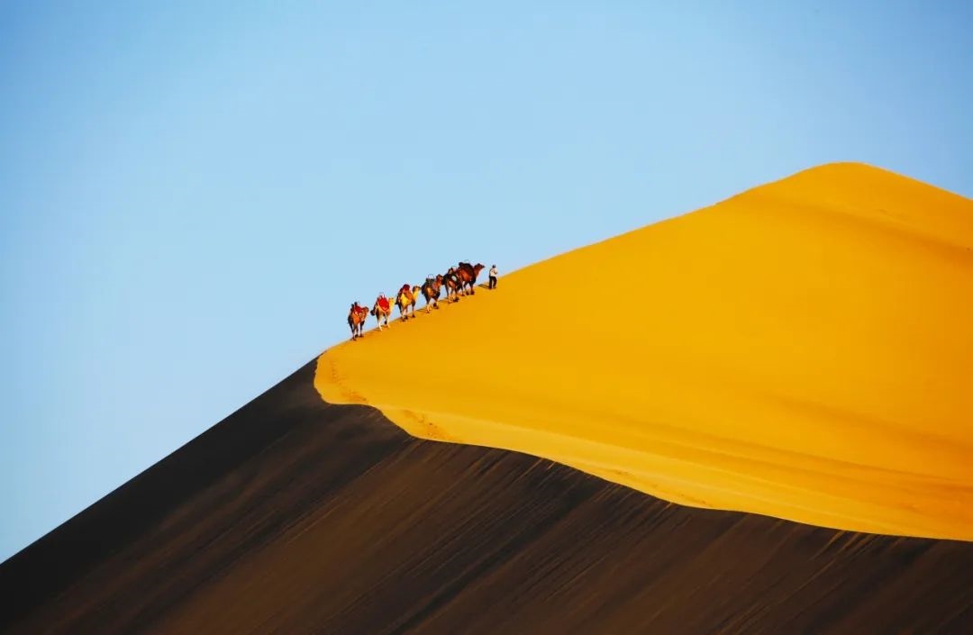 夕陽(yáng)下的鳴沙山。