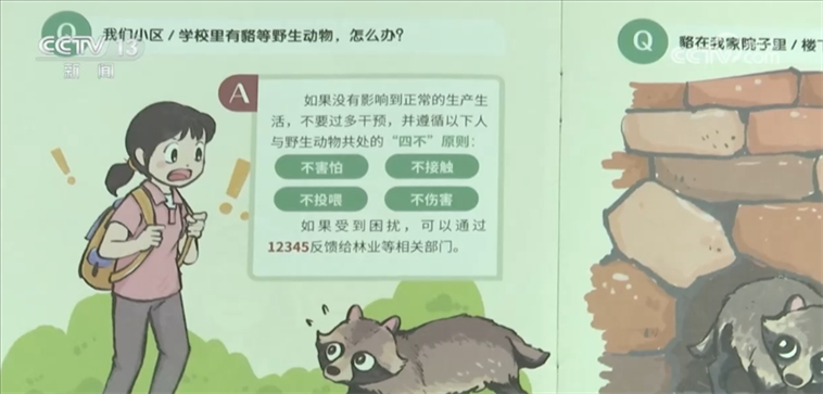 向社區(qū)居民發(fā)放的科普小冊子上,面對(duì)野生動(dòng)物應(yīng)該怎么辦,被總結(jié)為“四不原則”:即“不害怕、不接觸、不投喂、不傷害”。