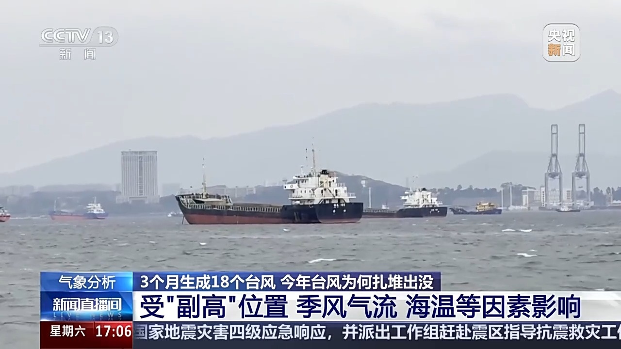為何臺風(fēng)扎堆出現(xiàn)?專家介紹,這種情況主要受副熱帶高壓位置、季風(fēng)氣流、海溫等方面的因素影響。今年7月和9月,