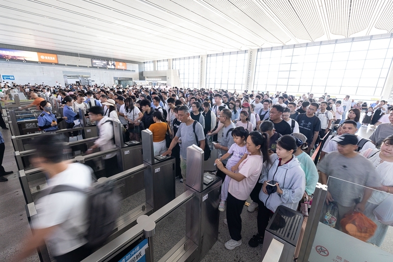 7月1日,旅客在浙江湖州站依次檢票進站。