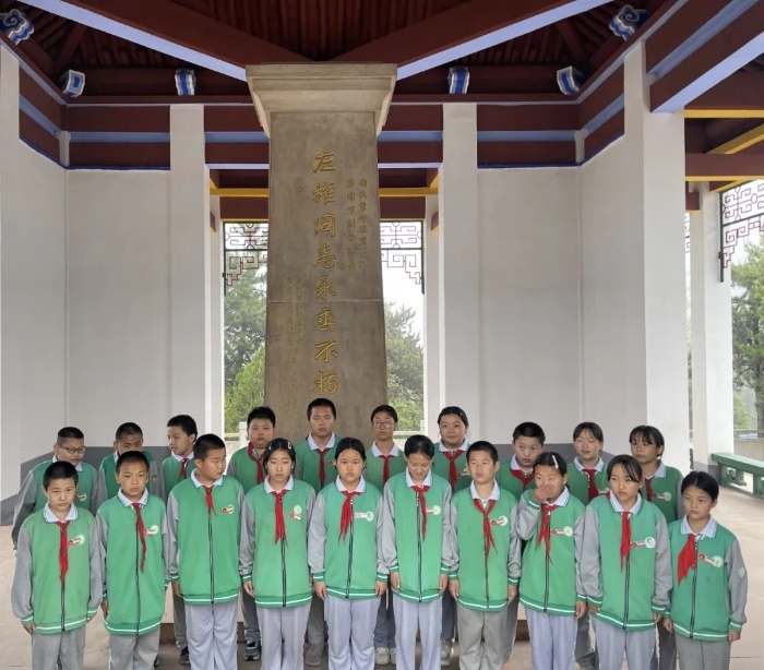 2025年5月23日,澤城九年一貫制學(xué)校五、六年級(jí)的學(xué)生舉行活動(dòng)紀(jì)念左權(quán)將軍。(新華網(wǎng) 于楊 攝)