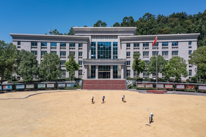 8月20日,人們?cè)谥貞c市永川區(qū)紅爐鎮(zhèn)政府廣場上晾曬糧食。