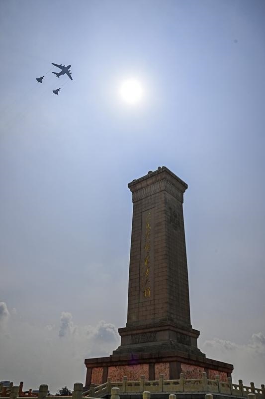 9月3日,紀念中國人民抗日戰(zhàn)爭暨世界反法西斯戰(zhàn)爭勝利80周年大會在北京隆重舉行。這是轟炸機梯隊接受檢閱。