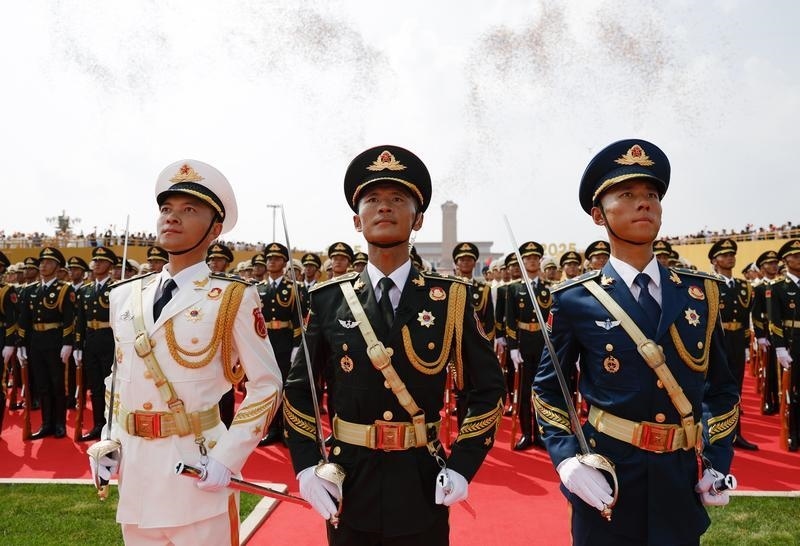 9月3日,紀念中國人民抗日戰(zhàn)爭暨世界反法西斯戰(zhàn)爭勝利80周年大會在北京隆重舉行。這是國旗護衛(wèi)隊在天安門廣場列隊。