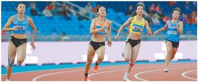 浙江隊選手陳妤頡(左二)在十五運會田徑項目女子200米預賽中。本報記者 陶相安攝