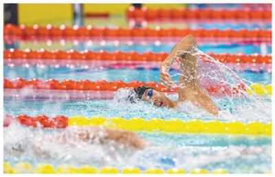 山東隊選手張展碩在十五運會游泳項目男子1500米自由泳決賽中。環(huán)球時報記者 崔 萌攝