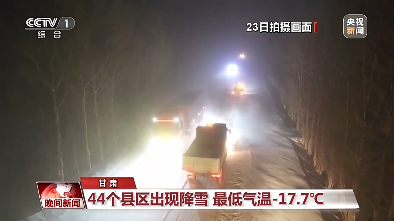 從11月23日起,受較強(qiáng)冷空氣影響,甘肅自西向東出現(xiàn)大風(fēng)、降溫和雨雪天氣。據(jù)監(jiān)測,23日8點(diǎn)至24日8點(diǎn),甘肅省44個(gè)縣區(qū)出現(xiàn)降雪,全省大部最低氣溫已降至-6℃以下,張掖民樂出現(xiàn)全省最低氣溫-17.7℃。受地面積雪和結(jié)冰影響,多條高速及國、省干道局部路段實(shí)施臨時(shí)交通管制。
