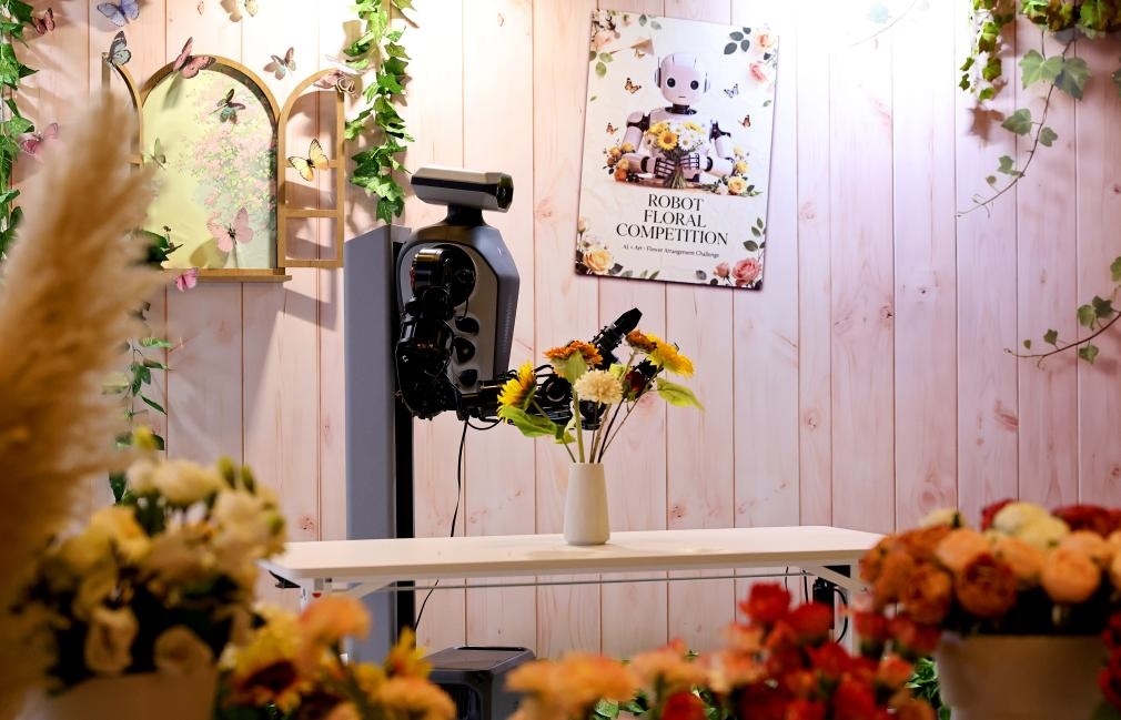在應(yīng)急救援賽區(qū)的對面,具身智能被包圍在鮮花叢中,有11支賽隊一較高下。第三屆全國職業(yè)技能大賽人工智能賽道上海隊教練張曄說,這考驗的是對“力”的掌控,因為花莖的脆度、花瓣的張力,都在毫厘之間。