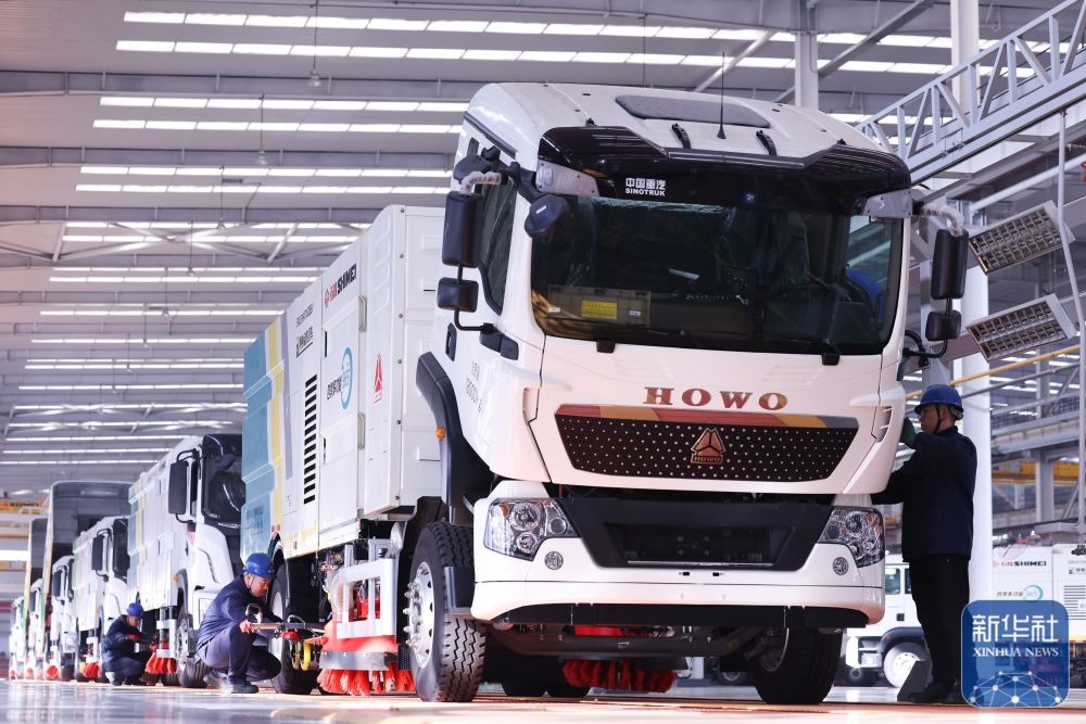 ↑ 12月15日,在河北省石家莊市的冀中裝備石煤機(jī)公司,工人在組裝新能源環(huán)衛(wèi)車(chē)。新華社發(fā)(梁子棟攝)