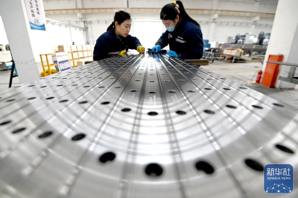↑ 12月15日,在位于江蘇省南通市通州區(qū)興仁鎮(zhèn)的江蘇富松模具科技有限公司車(chē)間內(nèi),工人趕制模具產(chǎn)品訂單。新華社發(fā)(翟慧勇攝)