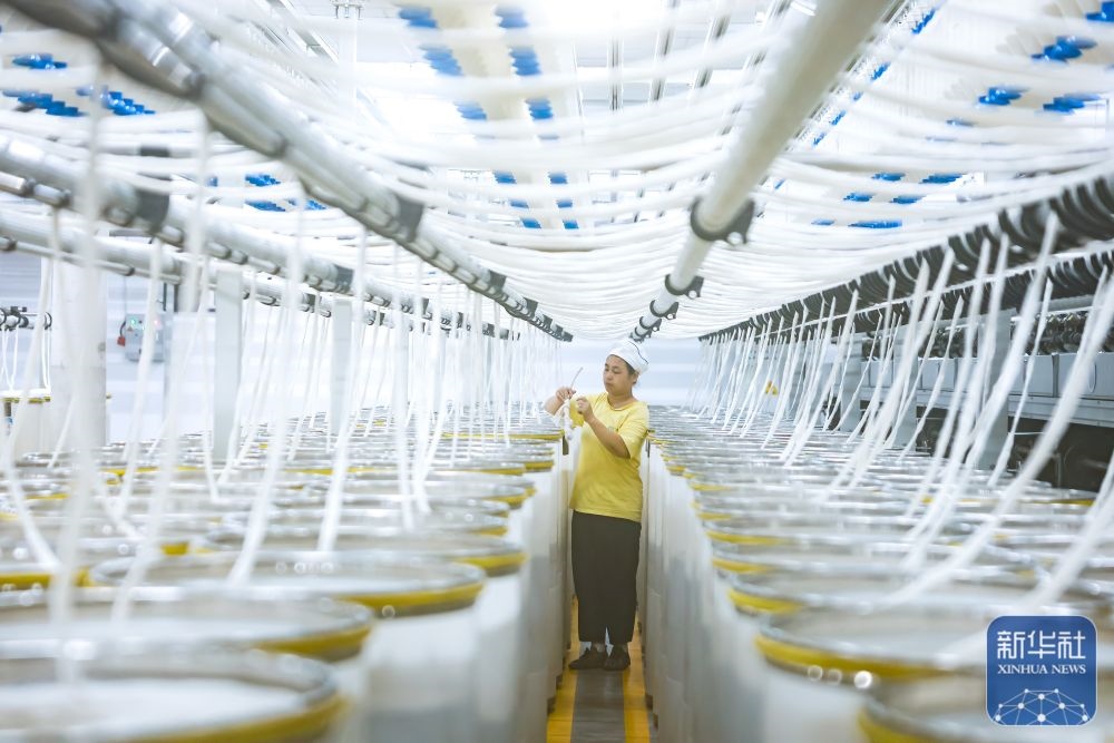 ↑ 12月15日,工人在江蘇省泰州市姜堰區(qū)三水街道江蘇泰達(dá)紡織科技有限公司智慧紡紗車(chē)間忙碌作業(yè)。新華社發(fā)(顧繼紅攝)