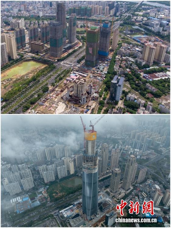2025年12月18日,海南自由貿易港正式啟動全島封關。近年來,海南自貿港建設在利好政策帶動下不斷刷新“自貿港速度”,一個個重大項目、重點園區(qū)拔地而起,直觀呈現(xiàn)海南自貿港的蓬勃生機。這里正成為中國對外開放的新前沿、互利合作的新熱土和推動經(jīng)濟全球化的新引擎。上資料圖為2020年8月21日因故停工的“海南第一高樓”海南中心項目,下資料圖為2025年12月16日海南中心項目順利完成塔樓核心筒結構封頂。(拼版圖,無人機照片)