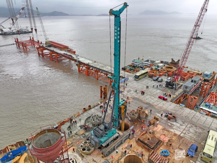 山河智能SWDM1280型旋挖鉆機(jī)在甬舟鐵路西堠門公鐵兩用跨海大橋施工