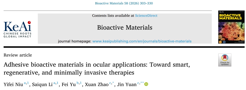 近日,首都醫(yī)科大學附屬北京同仁醫(yī)院院長袁進教授團隊在新一代眼科“生物膠水”研究領域取得重要進展,有望破解傳統(tǒng)眼科手術縫線帶來的一系列風險難題,也為這類材料從實驗室走向臨床應用提供了清晰的路徑指引。該研究論文發(fā)表在國際學術期刊《生物活性材料》上。
