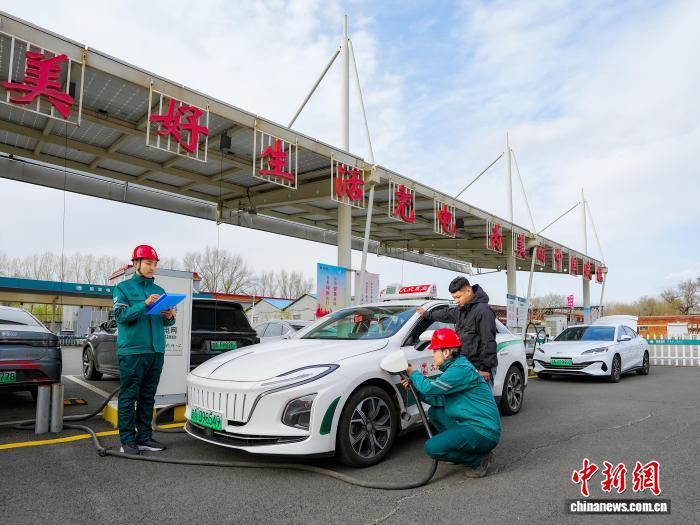 一新能源汽車在長春市蔚山路充換電站充電。(資料圖)(國網吉林省電力有限公司供圖)