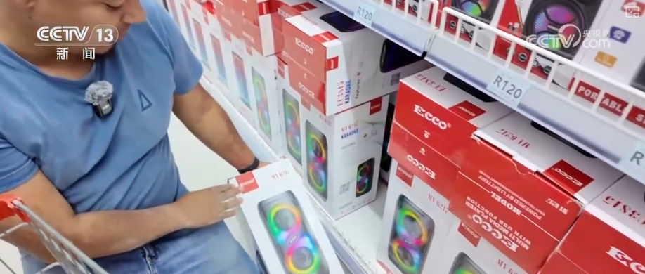 在南非首都開(kāi)普敦的一家中國(guó)商品批發(fā)城里,顧客絡(luò)繹不絕。一款集收音機(jī)、燈光、移動(dòng)電源等為一體的多功能藍(lán)牙音箱格外受歡迎。