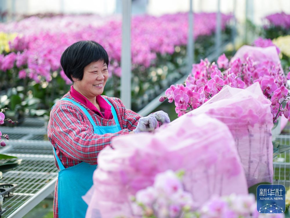 ↑1月23日,花卉工人在江蘇省泰州市姜堰區(qū)顧高鎮(zhèn)現(xiàn)代園藝產(chǎn)業(yè)園基地為花做造型,準備供應節(jié)日市場。新華社發(fā)(周社根攝)