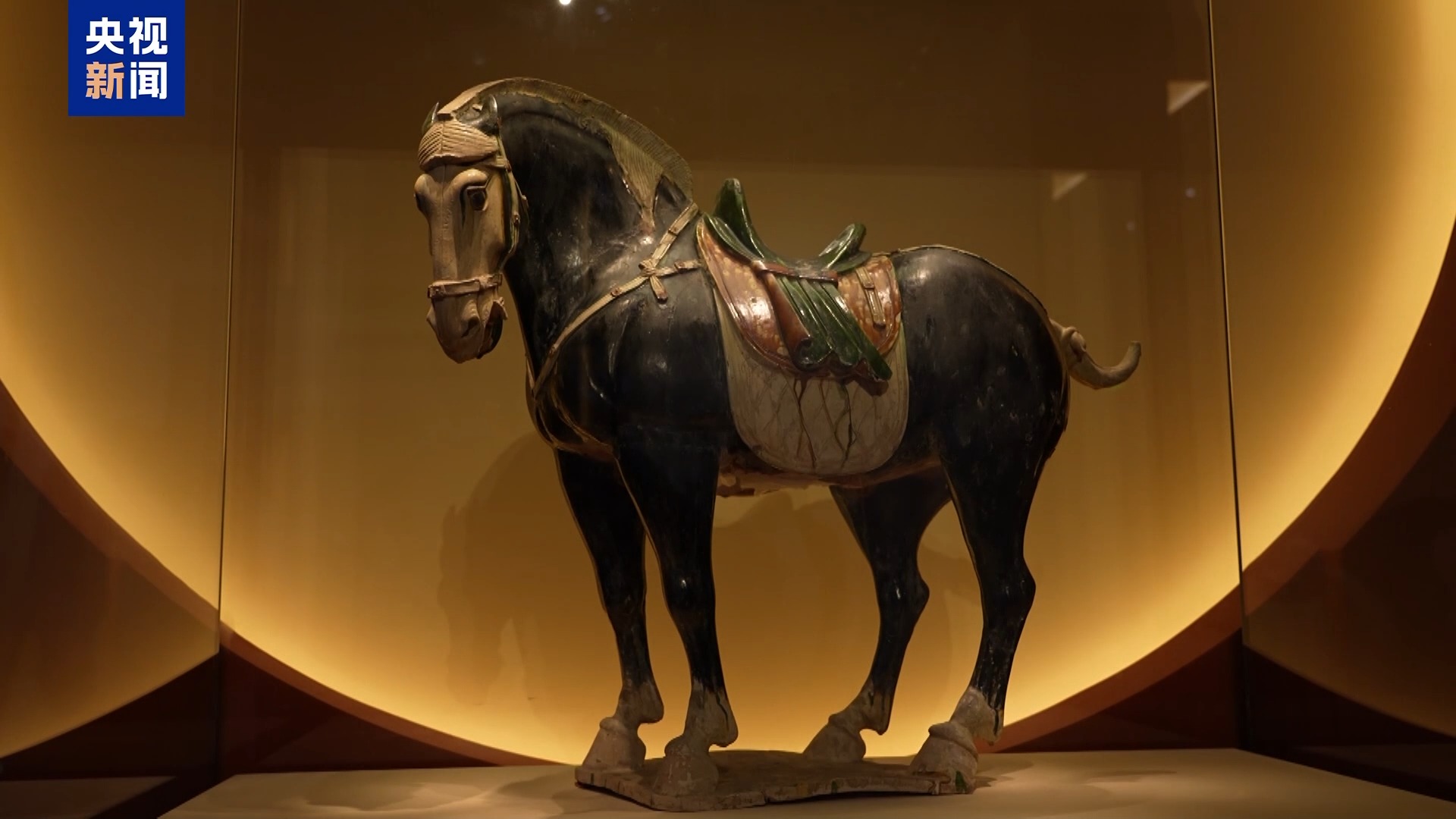 國家博物館館員、策展人 許文珺:它一改漢代時期古拙平穩(wěn)的風格,展現出了唐馬的風范。它是唐三彩中難得的一件黑釉精品,也是我們國博的鎮(zhèn)館之寶之一。