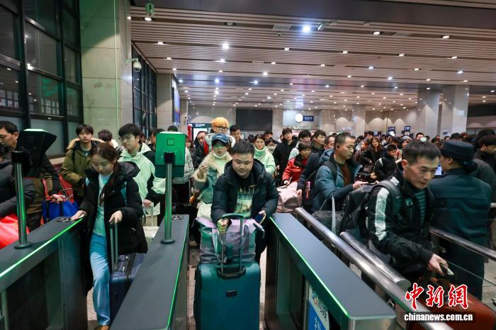 2月2日,乘客在北京西站排隊(duì)進(jìn)站乘車(chē)。中新社記者 賈天勇 攝