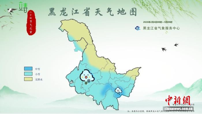 2026年“立春首日”黑龍江省天氣地圖(2026年2月4日8時至5日8時)。 黑龍江省氣象局供圖