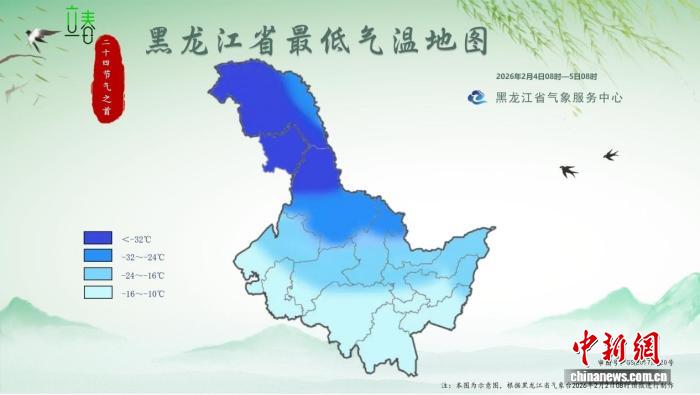 2026年“立春首日”黑龍江省最低氣溫地圖(2026年2月4日8時至5日8時)。 黑龍江省氣象局供圖