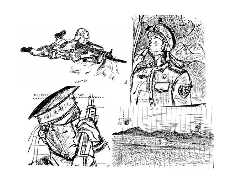 日記的封面印有金色大字“人民海軍”。翻開首頁,映入眼簾的是這樣一句話:“無名無利無悔,有情有義有祖國?!北咀永镞€夾著一幅手繪插畫——一名軍人正向軍艦莊嚴(yán)敬禮。日記中還記錄著這樣的心聲:“一個(gè)軍禮,一生托付,一句誓言,一生承諾!”字里行間,是一個(gè)青年對(duì)家國的赤誠與擔(dān)當(dāng)。