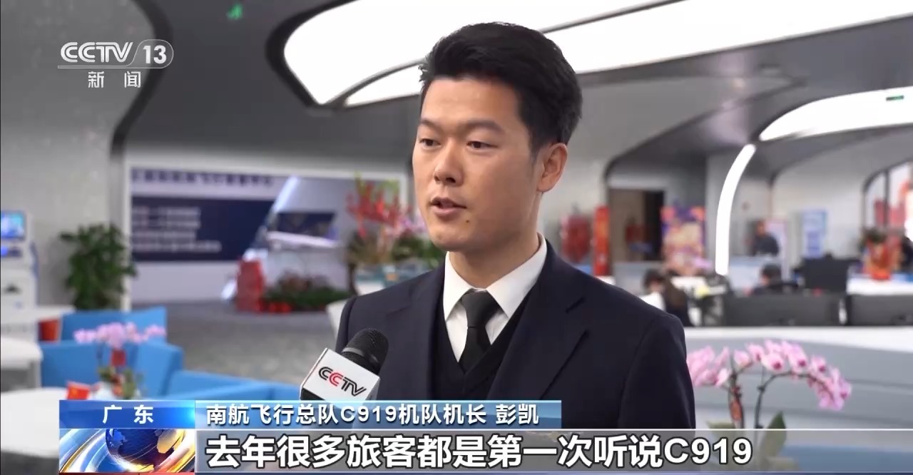 南航飛行總隊(duì)C919機(jī)隊(duì)機(jī)長 彭凱:去年很多旅客都是第一次聽說C919,今年可能有些不一樣,很多旅客已經(jīng)主動選乘去拍照打卡這個機(jī)型了。