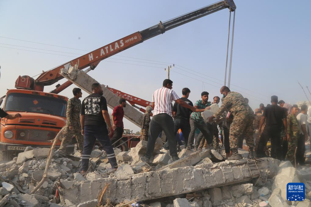2月28日,在伊朗米納卜市一所被襲擊的小學(xué),救援人員和當(dāng)?shù)鼐用裨噲D從廢墟里營(yíng)救傷員。