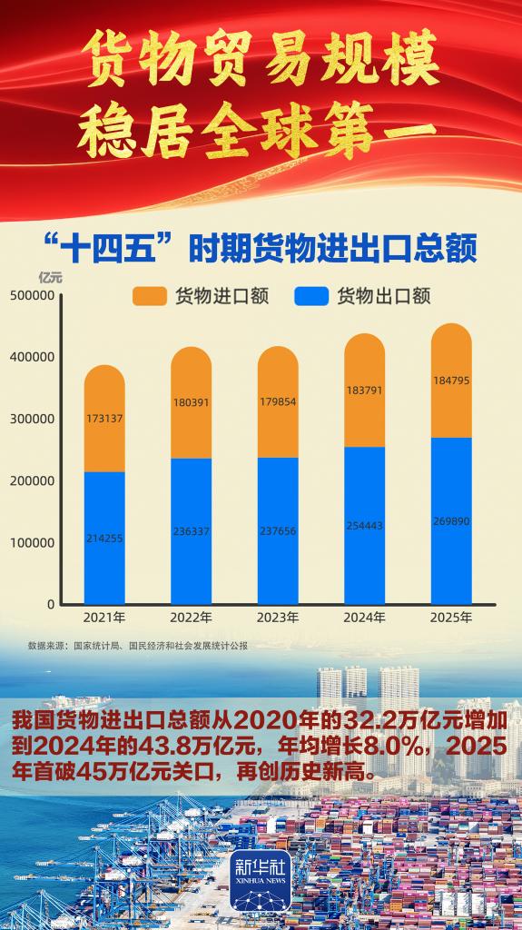 “十四五”勝利收官,“十五五”嶄新開局。我國經(jīng)濟(jì)總量完成“四連跳”,躍上140萬億元大關(guān),經(jīng)濟(jì)實(shí)力、科技實(shí)力、綜合國力躍上新臺階,中國式現(xiàn)代化邁出新的堅(jiān)實(shí)步伐,第二個百年奮斗目標(biāo)新征程實(shí)現(xiàn)良好開局。2026年全國兩會召開,舉世矚目。我們梳理出九組數(shù)據(jù),一起感受勝利收官的壯闊歷程、啟新開局的高光時刻。