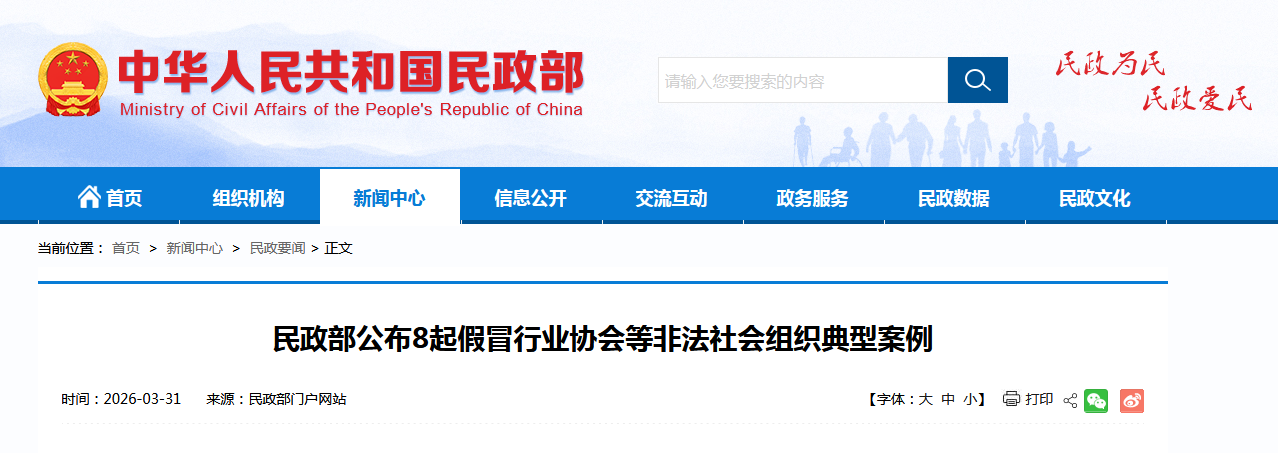 民政部公布8起假冒行業(yè)協(xié)會等非法社會組織典型案例