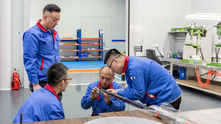 長(zhǎng)春市見(jiàn)真精密機(jī)械制造有限公司廠房?jī)?nèi),工作人員在查看部件精度。新華每日電訊記者 段續(xù)攝
