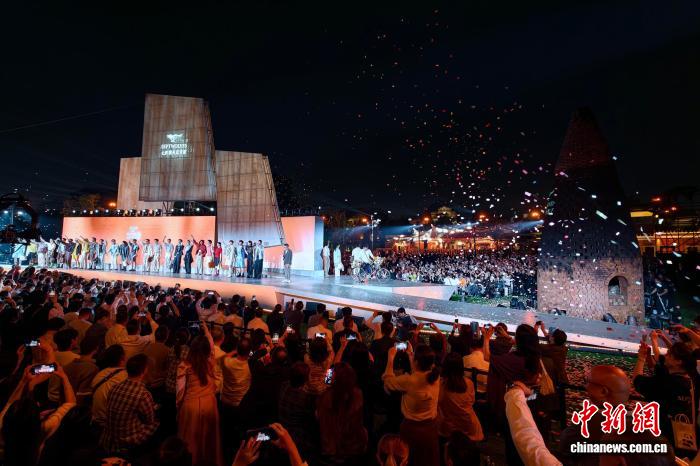 4月18日晚,福建泉州石獅打破傳統(tǒng)秀場(chǎng)的封閉空間,以承載千年海絲記憶的萬壽塔為天然幕布,打造場(chǎng)景化、開放式、沉浸式的戶外時(shí)尚盛宴。(石獅市融媒體中心供圖)