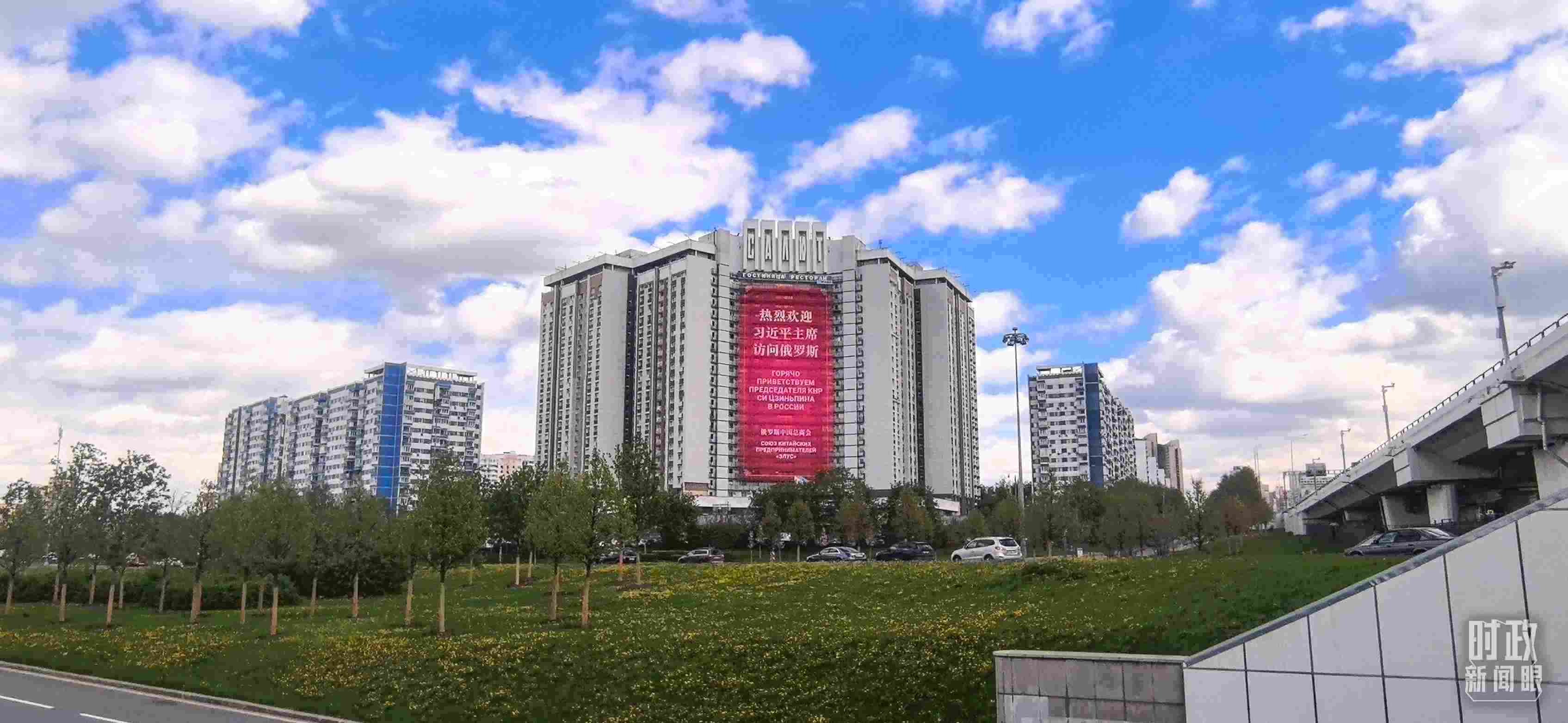 △莫斯科街頭醒目的歡迎標(biāo)語(yǔ)。(總臺(tái)央視記者范凱拍攝)